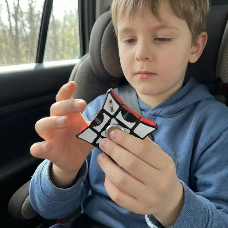 J’ai donné le cube à mon fils avant un long vol. Au lieu de donner des coups de pied dans le siège, il l’a fait tourner et tordre tout le trajet et est resté détendu.