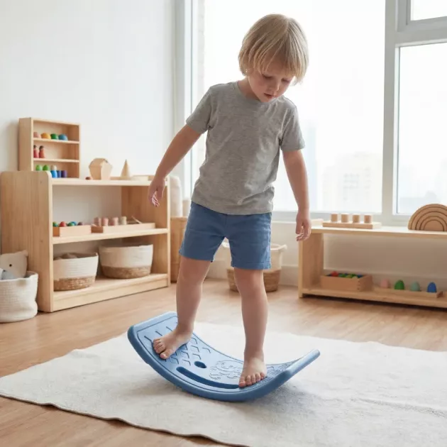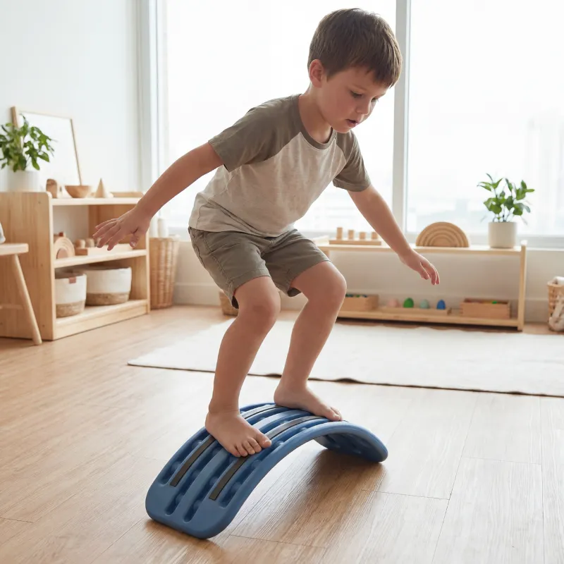 Je suis enseignante en maternelle et j’ai apporté cette planche incurvée dans notre classe. Les enfants la traversent à tour de rôle comme un pont, et cela aide vraiment leur coordination et leur confiance.