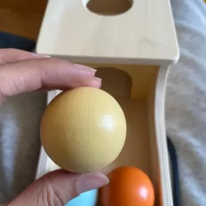 Chaque fois que je sors ce jouet, mon bébé devient tellement excité. Au début, je mettais la balle dans le trou quelques fois pendant qu’il regardait, et après environ 20 fois à le faire de manière répétée, il a enfin compris ! Maintenant, il est tellement excité quand je le sors parce qu’il est tellement fier une fois qu’il met la balle dans le trou.