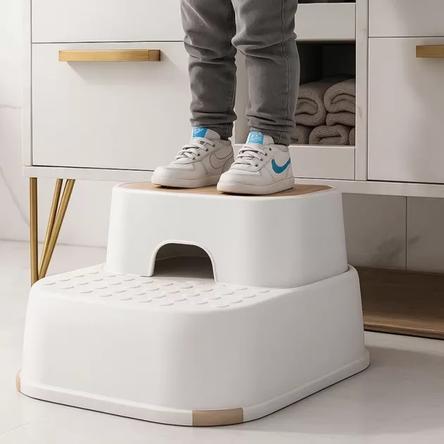 Les peuvent tout atteindre en toute sécurité grâce à cette marche robuste. Les glissades et les oscillations appartiennent au passé. Votre enfant peut se laver les mains ou se brosser les dents en toute autonomie. Le nettoyage est simple, et vous gagnez en tranquillité d'esprit chaque jour.