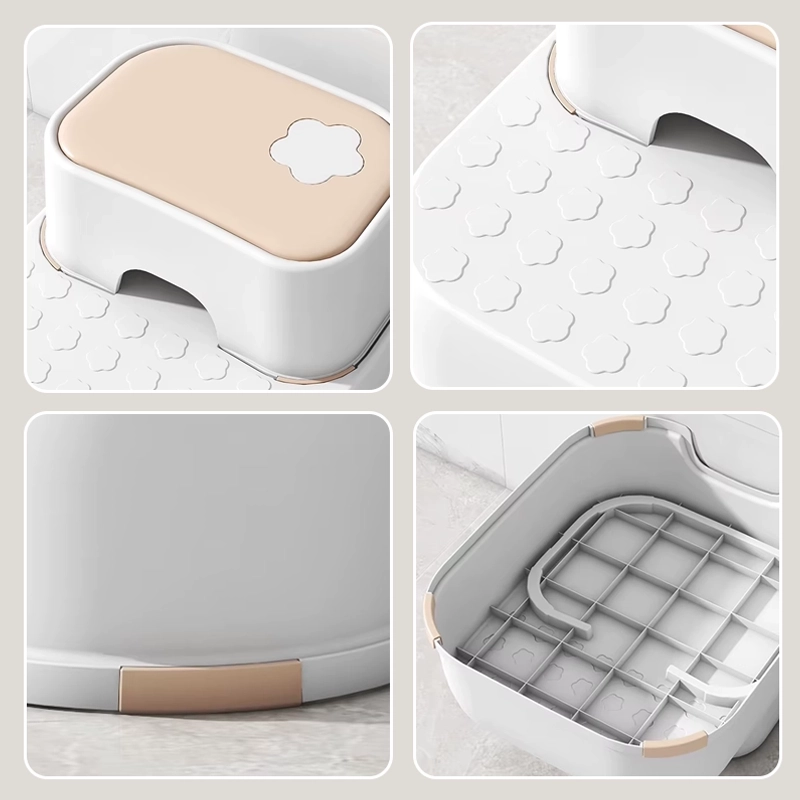 Les peuvent tout atteindre en toute sécurité grâce à cette marche robuste. Les glissades et les oscillations appartiennent au passé. Votre enfant peut se laver les mains ou se brosser les dents en toute autonomie. Le nettoyage est simple, et vous gagnez en tranquillité d'esprit chaque jour.