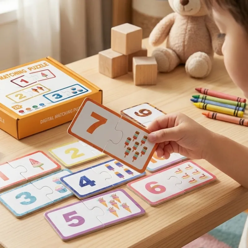Développement Cognitif - Chaque carte de puzzle renforce la résolution de problèmes en invitant à la pensée logique. Associer les chiffres stimule la mémoire et encourage l'exploration autonome.