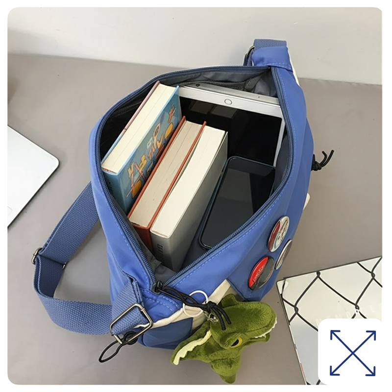 J’utilise la bandoulière pour les cours de danse. Elle garde mes élastiques, snacks et une petite bouteille en sécurité. Le design est joli et lumineux.