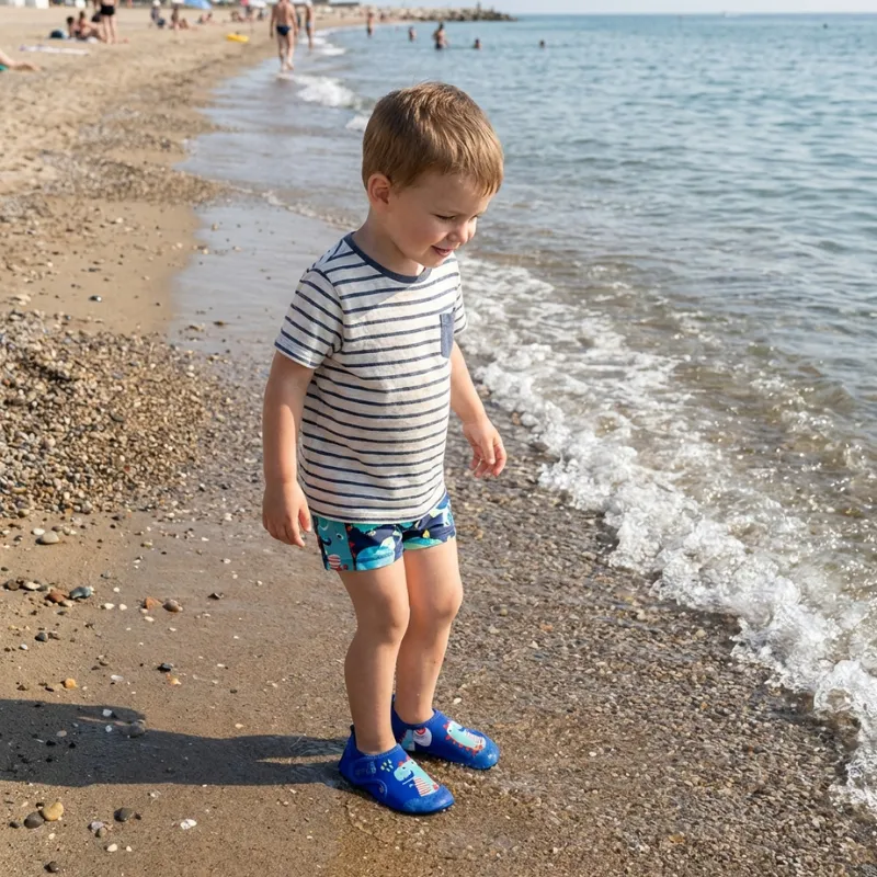 Les enfants peuvent éclabousser, courir et explorer dehors sans souci. Les motifs doux et colorés apportent des sourires à chaque instant de jeu. Le tissu à séchage rapide garde les pieds confortables après les jeux d'eau. Fini les pas glissants ou les chaussettes mouillées à la plage.