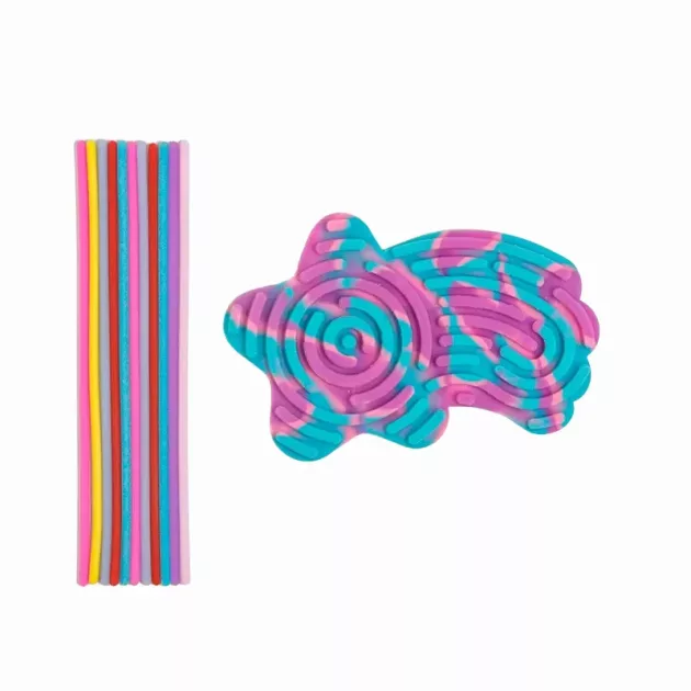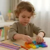 Ma petite sœur se calme vraiment quand elle joue avec son jouet anti-stress. Elle arrête de bouger et aime faire des motifs avec les couleurs.