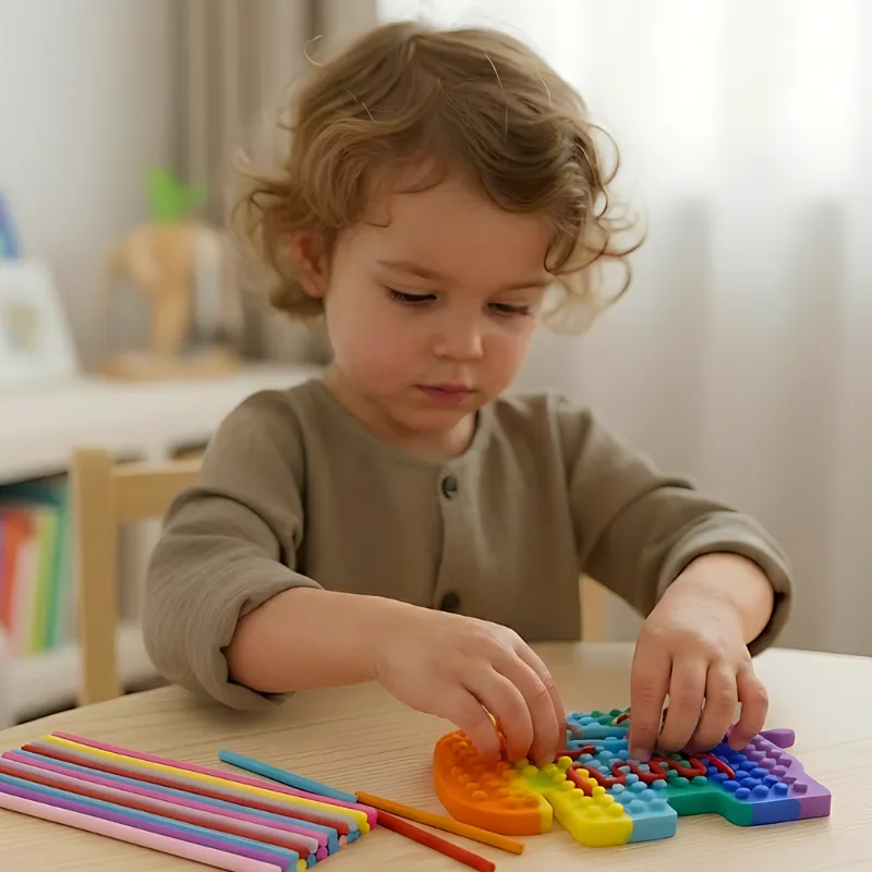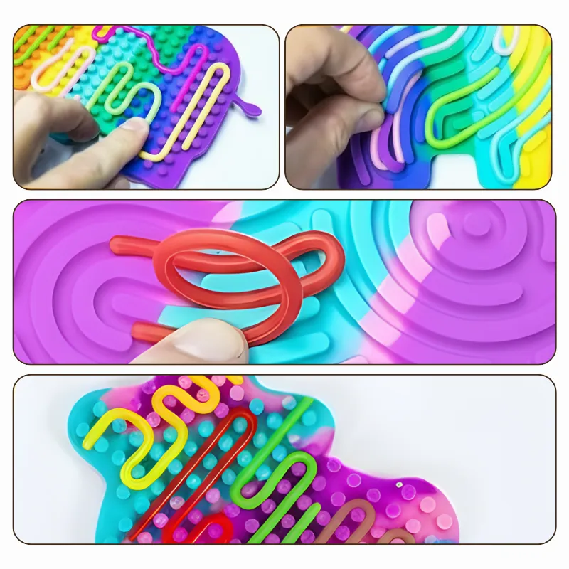 Les enfants passent des heures à s'amuser tout en développant des compétences importantes. Ce tableau sensoriel coloré en silicone stimule l'esprit et la concentration. Ses motifs attrayants favorisent l'imagination et aident à soulager le stress quotidien. Les parents sont rassurés de savoir que le matériau est sûr et facile à nettoyer.