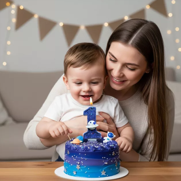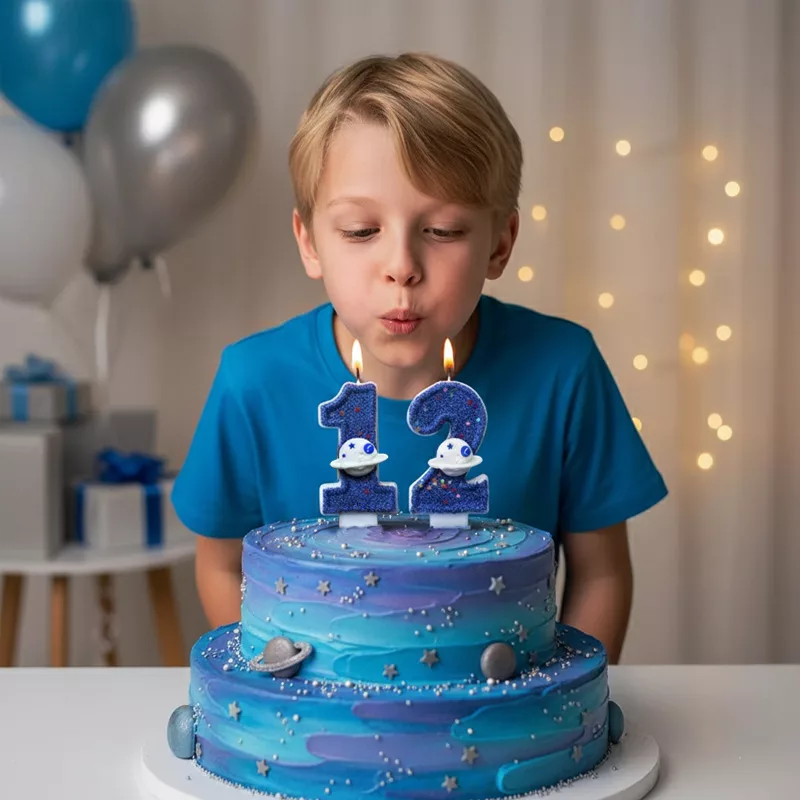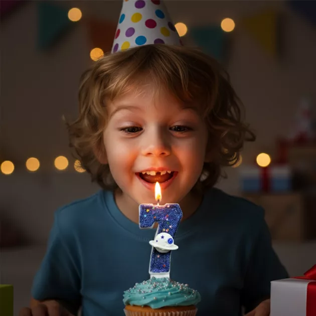 Mon fils était ravi de voir son gâteau avec cette bougie ! Le design spatial rendait vraiment bien sur toutes les photos et elle était facile à allumer.