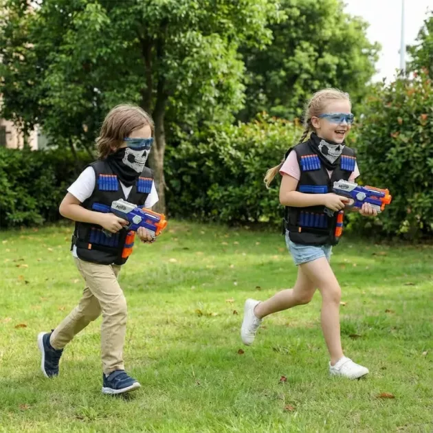 Mes amis et moi utilisons ces gilets pour nos jeux d’extérieur. J’aime les poches pour les snacks et l’eau, et ma maman aime que mes yeux soient protégés.