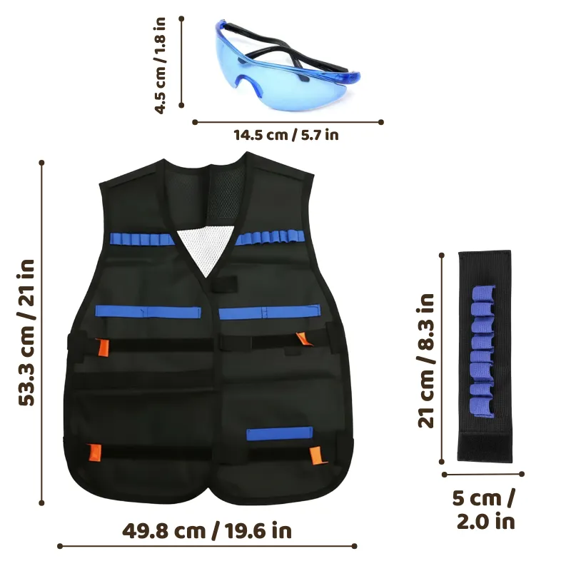 Mes amis et moi utilisons ces gilets pour nos jeux d’extérieur. J’aime les poches pour les snacks et l’eau, et ma maman aime que mes yeux soient protégés.