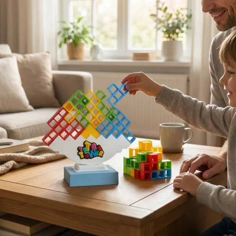 Des blocs aux couleurs vives attirent rapidement l'attention et stimulent la créativité. Les jeux d'empilement développent la concentration et encouragent chaque joueur à rester calme. Les rires remplissent la pièce alors que les familles partagent des moments et souvenirs joyeux. Les pièces en plastique sont sûres, faciles à nettoyer, et ne s'écaillent jamais pendant l'utilisation.
