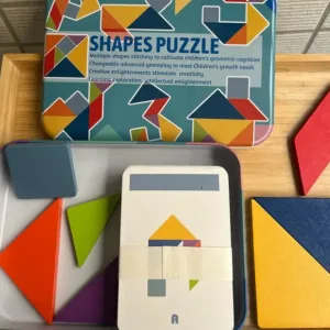 A wonderful educational toy! My child loves trying to create the shapes shown on the cards. The pieces are smooth and easy to handle. It’s a fantastic puzzle for improving hand-eye coordination. The compact box makes it convenient to carry during travel. Great buy!