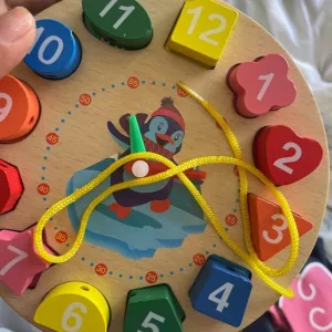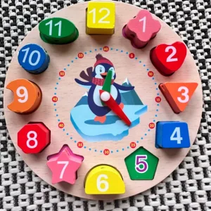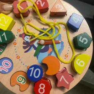 Ce jouet est une manière amusante d’introduire la lecture de l’heure ! Mon enfant adore les formes et les chiffres vifs et colorés. Le bois est lisse et sûr, mais suffisamment durable pour un usage quotidien.