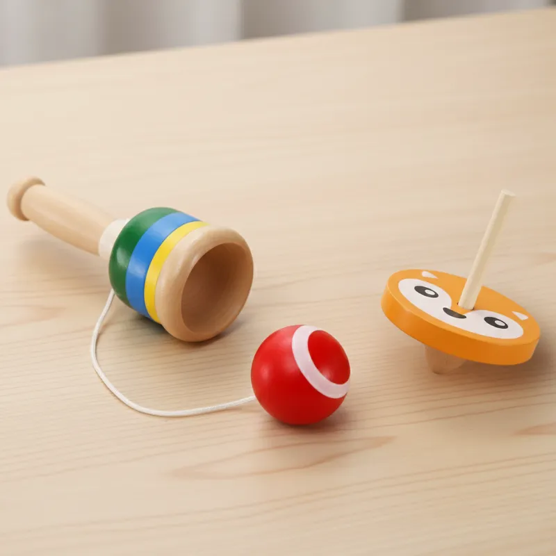 Le jeu de lancer de gobelet en bois est devenu un favori de la famille. Nous rivalisons pour voir qui fera le plus d’attrapés consécutifs. C’est vraiment du temps de qualité ensemble !